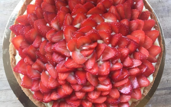 Solbær- og vaniljeterte med jordbær
